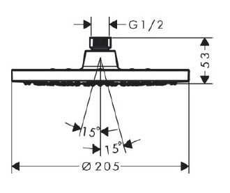 • Ángulo de salida del agua: 15°