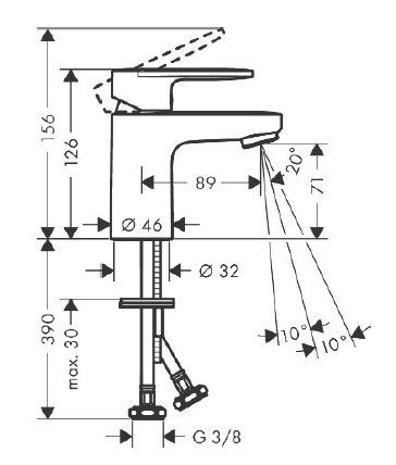 Altura hasta salida de agua: 71 mm