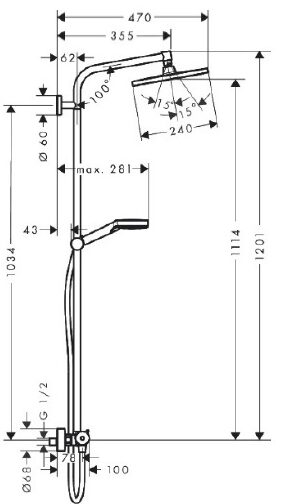 Su diseño moderno y líneas rectas permiten una integración perfecta en baños contemporáneos. El sistema está pensado para una instalación mural y proporciona una experiencia de ducha cómoda tanto con el rociador superior como con la teleducha.